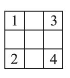 O Daniel escreveu os números naturais de 1 a 9 nas células de uma tabela 3 x 3. Ele começou por escrever os números 1, 2, 3 e 4 tal como na figura. Ao terminar, o Daniel observou que a soma dos números nas células que partilham um lado com a célula do 5 é 9. Qual é a soma dos números nas células que partilham um lado com a célula do 6?