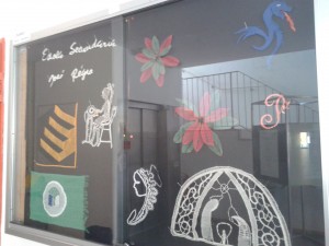 Para que os trabalhos fossem expostos de forma mais criativa, a turma do Curso Vocacional Secundário construiu um ovo, com a orientação do prof. Rui Silva e a colaboração do 10ªAV2 da prof. Célia Almeida, onde posteriormente se afixaram os desejos dos alunos.